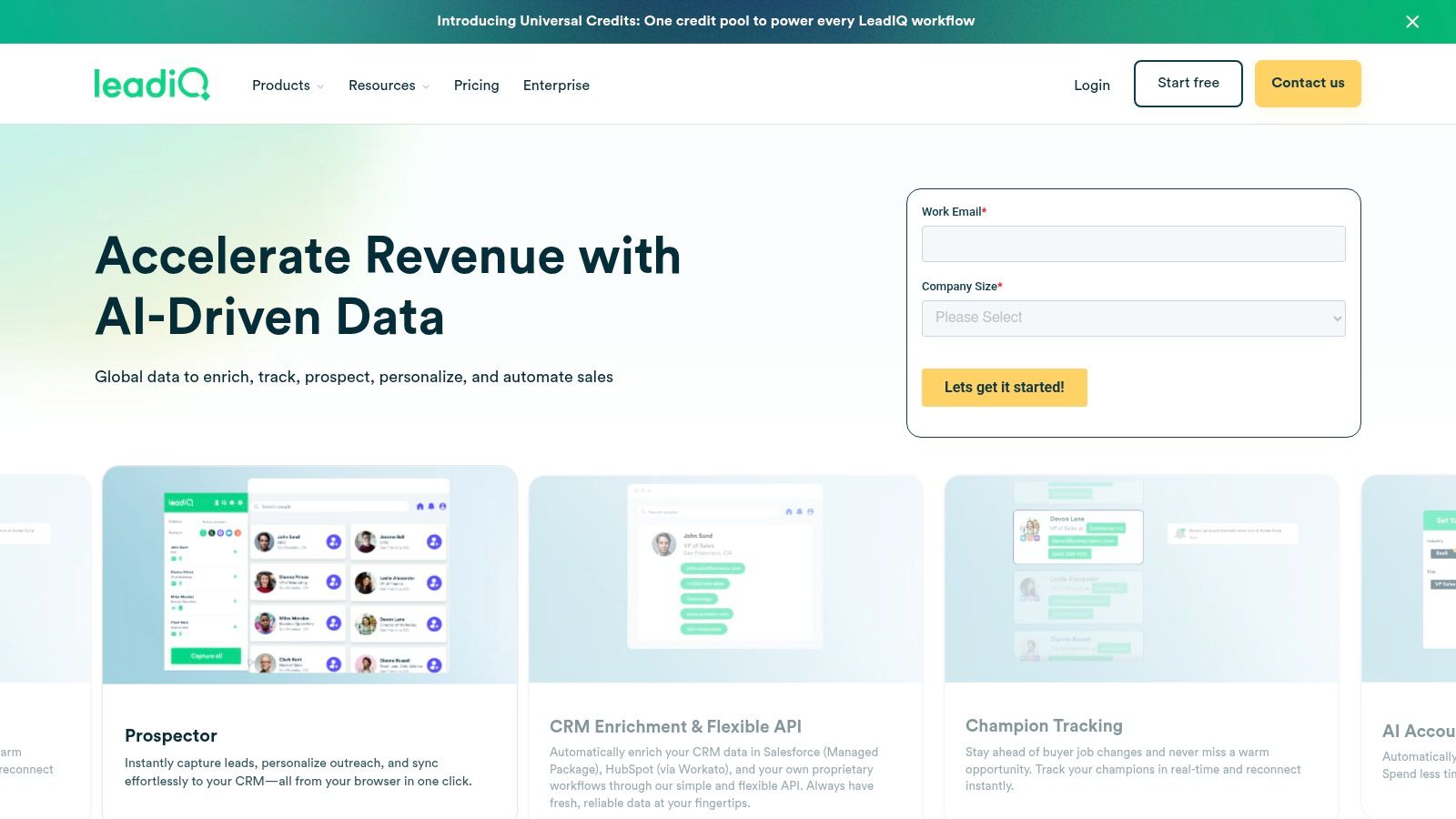 | LeadIQ | Chrome capture, verified emails/phones, job-change alerts, CRM/SEP sync | Rapid contact capture and instant CRM sync for SDR workflows | SDRs and growth teams focused on outbound capture | Easy capture workflow; verified contact focus; transparent plans | Self-serve pricing with credit tiers |