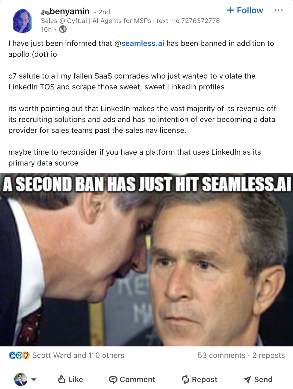 Here's Benyamin's post sharing the shock that will affect many scraper's in B2B sales.