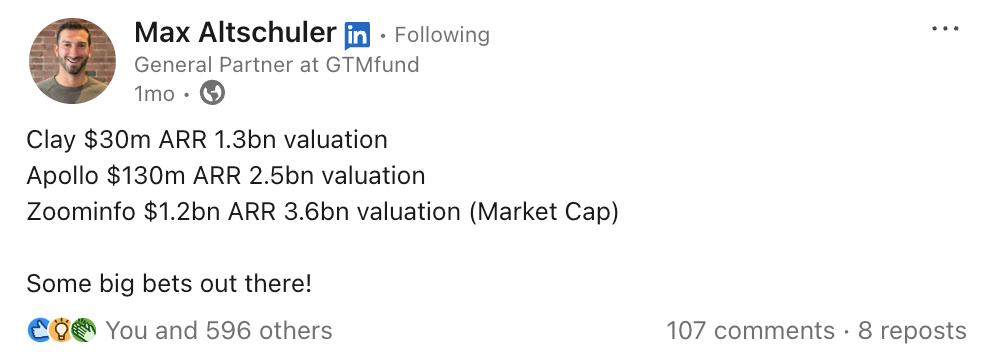Max Altschuler recently posted that the company reached a staggering $130m ARR. This is big business and what's happened this week is a big deal for Apollo, their investors and the B2B sales ecosystem.