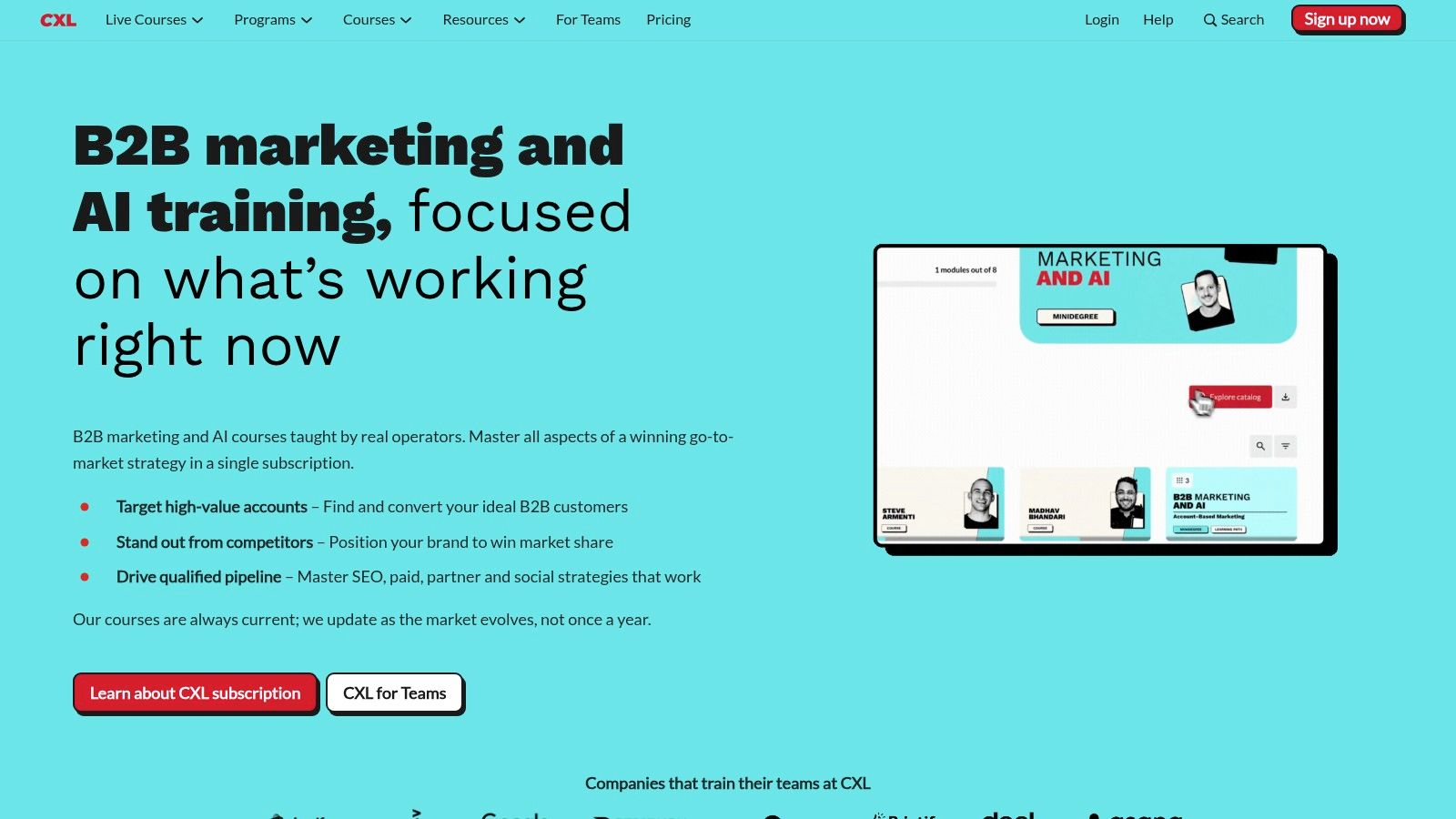 CXL offers a different path to messaging mastery. Instead of a single consultant, it's a comprehensive training platform for entire teams. It provides advanced, practitioner-led marketing courses designed to build repeatable skills in-house. For leaders aiming to build strong messaging capabilities, CXL serves as an on-demand enablement engine for their go-to-market teams.