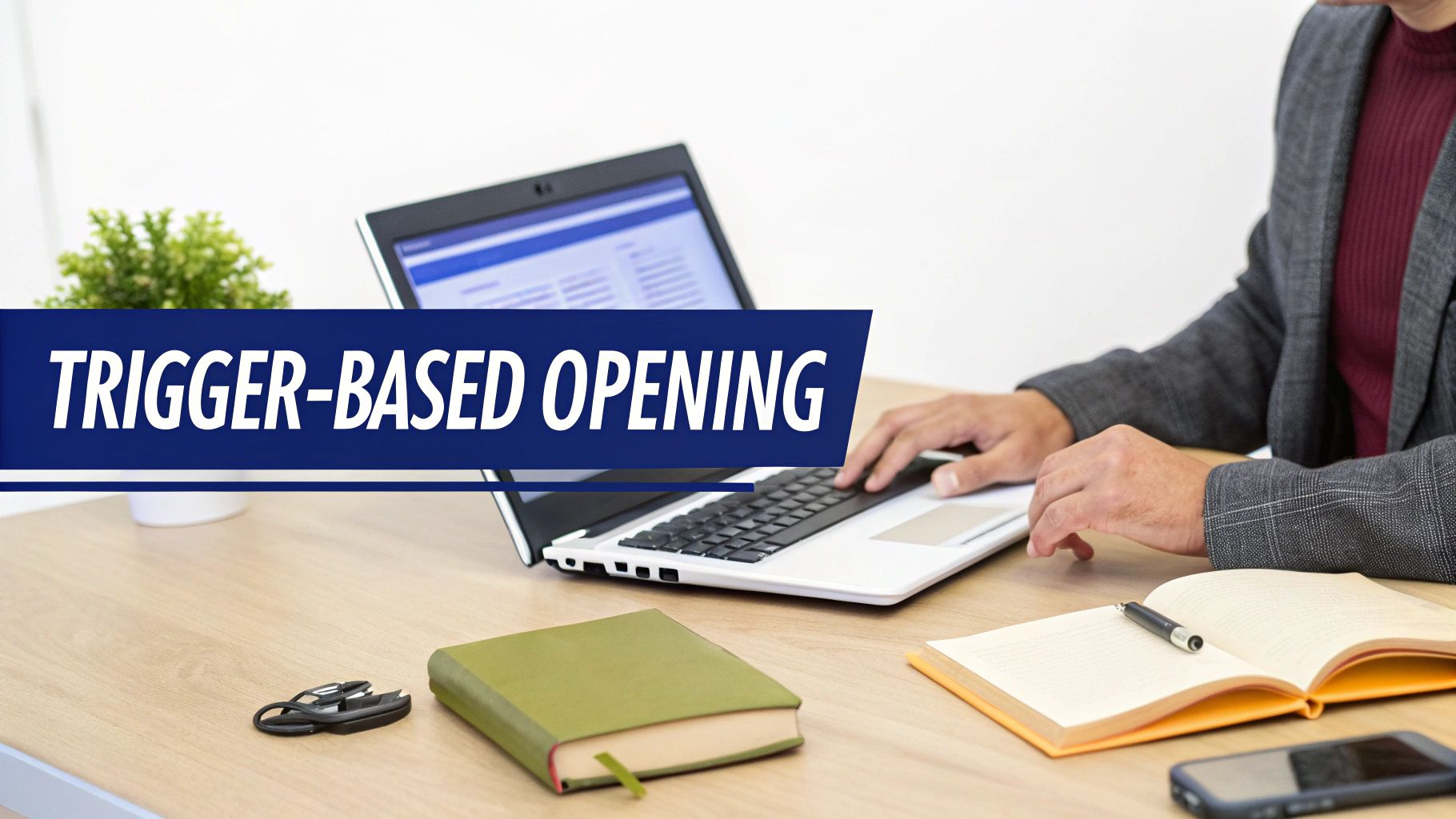 This is one of the most powerful sales conversation starters because it swaps generic outreach for hyper-relevant, timely engagement. Instead of guessing a prospect's priorities, you lead with a specific business event (a "trigger") that signals a potential need for your solution. This approach immediately shows you’ve done your homework.
