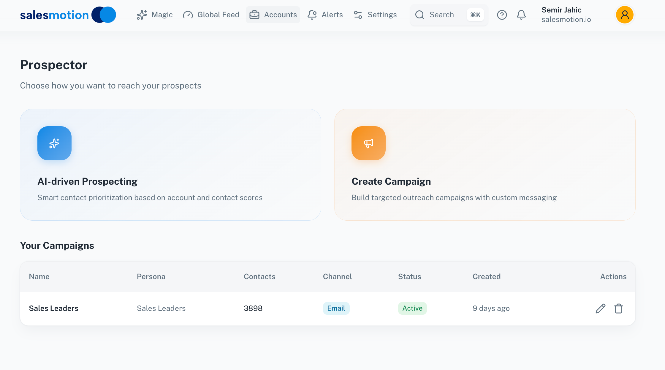 - Use campaigns for broad outreach and AI-driven Prospecting for high-value, targeted contacts. The two modes complement each other well.