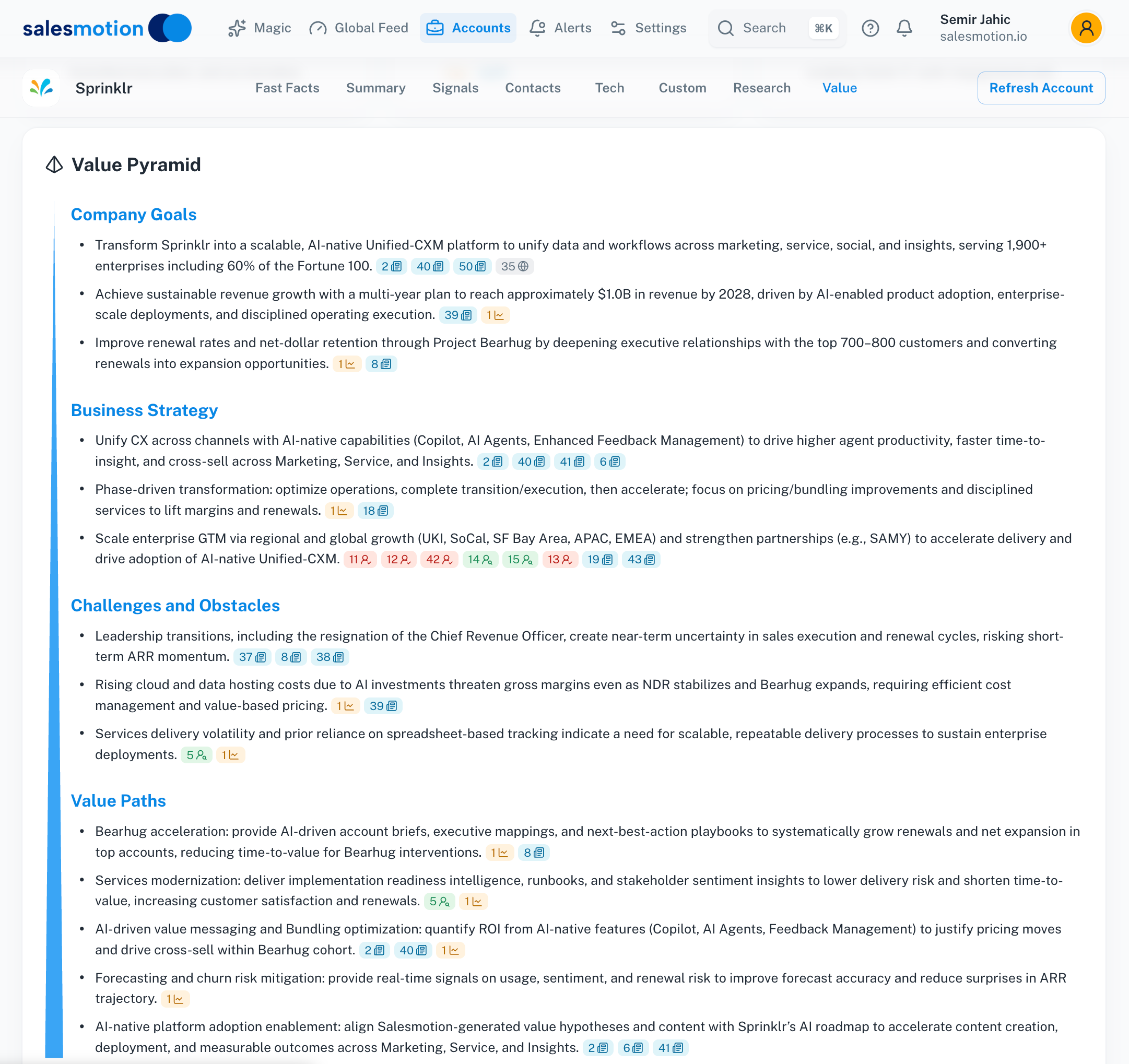 - Review before every significant meeting. The Value Pyramid changes as new signals are processed, so a quick review before an important call ensures you're working with the latest insights.